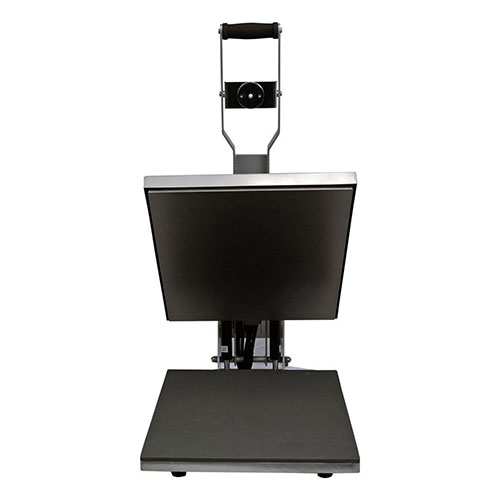 The clam action means this press requires minimum operating space and the auto open function means that at the end of the countdown timer the heat press automatically opens, stopping the transfer process. Pressure adjustment is made manually via an easy to operate pressure adjustment wheel.