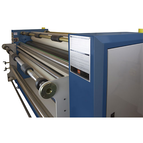 The Alpha Calender Roll-Master 1.7 is supplied as standard, with 3 feed rollers and 3 take off rollers and is top drum fed. This enables you to simultaneously run a protection paper, printed paper and textile to be printed and re-roll them again on the take off rollers, at transfer speeds up to 1.3 m/min.