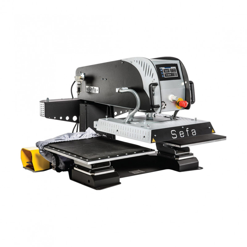 Hybrid pneumatic press with dual standard platens + membrane platens and auto-shuttle function.