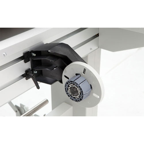 The ValueJet 1604WX printer can handle 2” and 3” rolls. The printer comes with a stand with integrated roll holders. Different motorised winding/unwinding systems are available for roll-to-roll production.