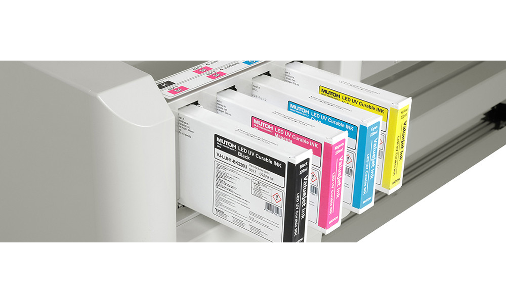 In addition to CMYK, the ValueJet 1638UH Mark II can also be set-up with varnish and white to handle transparent or non-white substrates without losing colour density or to create special print effects and multi-layer printing for high-value graphics. Both flex and rigid inks are available.