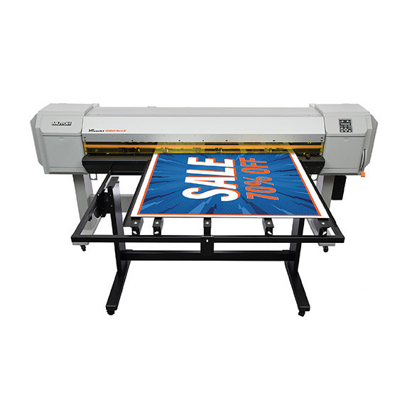 The printer accommodates 1625 mm roll media as well as rigid boards up to 1625 mm wide up to 15 mm thick and up to 15 kg.