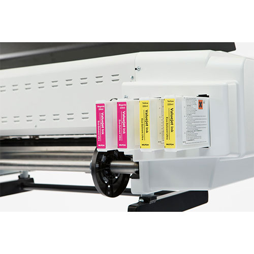 The ValueJet 628 can handle 2” and 3” rolls. The machine incorporates three heater zones. The heating elements will tackle media pre-heating, ink fixation and drying of the prints. The VJ-628 printer using Eco Ultra ink is ideally suited to deliver top quality images when printing directly onto a wide range of low-cost standard available uncoated PVC, banner and soft-sign materials as well as for coated substrates.
