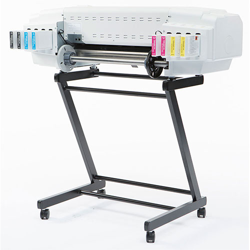 The printer comes as a desktop printer with integrated roll holders for media rolls up to 9 kg.